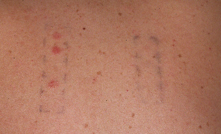通常は接触した部位に一致して赤くなり(紅斑)ブツブツができて(丘疹、小水疱、膿疱)、やがて褐色の色素沈着になり皮がむけてきます(落屑)。稀に接触部位を超えて全身に皮疹が出ることもあります。触れるものは身の回りのもの何でも原因になりえますが、点眼薬や外用薬など医師が処方した薬でかぶれることもあります。草花で有名なのは西洋サクラソウ(プリムラオブコニカ)やギンナン、ウルシなど、あと毛染めや金属カブレもよく遭遇します。原因かどうかを確認するにはパッチテストといって、ごく少量を皮膚に貼り付けてそこで起こる反応から推定することができます。通常は絆創膏で密封して48時間(丸2日間)貼って48時間と72時間で判定しますが、2日間貼りっぱなしでその間入浴できないので、真夏はちょっとできません(せっかくやっても汗で浮いてしまい判定できない)。