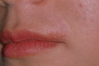 単純ヘルペスはよく「かぜのはな」「ねつのはな」といわれたりもしますが、風邪をひくと口唇にブツブツ(小水疱)ができるもので、ヒトヘルペスウィルスI型による感染症です。感染症といっても多くは子供の頃親から子に知らないうちにうつされているようで、その後神経の根元に潜んでいてご主人様の体調が落ちると皮膚に症状を起こすものです。通常は数日くらいできれいに治ってしまいますが、何度も繰り返すのがやっかいなのと、目の回りにできると角膜を障害することもあるので注意が必要です。またアトピー性皮膚炎の人はカポジー水痘様発疹症といって、湿疹の上に急速に広がり発熱を伴ったり重症化しやすいのでいつもと違う発疹が出てきたときにはすぐに皮膚科を受診して下さい。治療としては今は抗ウィルス薬があるので、症状の強さによって外用、内服、重症では入院の上点滴、という選択肢があります。