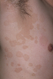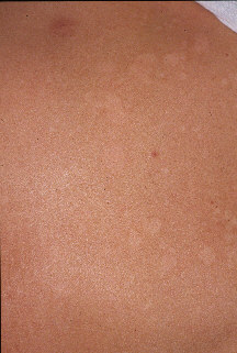 軽度鱗屑のある褐色の色素斑 脱色素斑(このように見えることも)